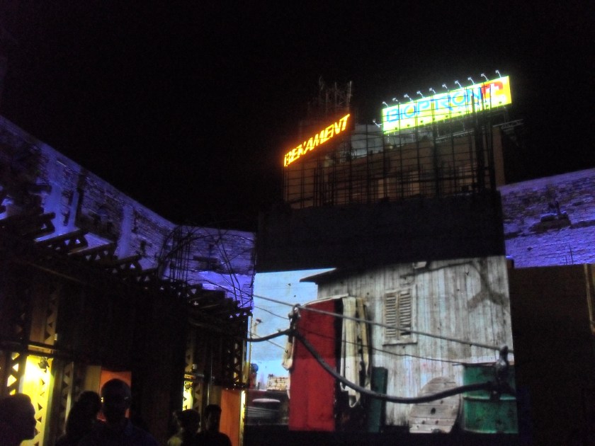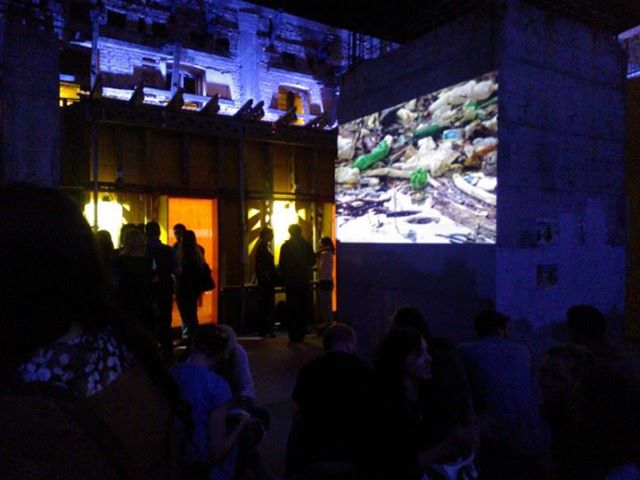 Thanks also to those who came down to The Spanish House in Belgrade last week and made the official launch event such a memorable occasion. If you’ve been following my antics over the last few months you might remember that this is where this whole thing started, down in the flooded basement beneath the ruins listening to my new friends conjuring up ghostly echoes armed only with voice and spanner. To be able to return months later and play the sounds back into the very space where they were recorded was for me a very special and symbolic moment, and I was very glad that so many of my Belgrade friends came down and joined me for the occasion. Now transformed into an arts pavilion with the basement safely-but-sadly sealed-off, the ruins have undergone significant changes even since those snowy days back in April, making the album a time capsule of yet another lost moment in it’s long and chequered history. As the unholy metallic chimes and deep bass pulses swirled once again around crumbling walls eerily lit for the occasion, Milica Nikolic’s raggedly beautiful photos building and the local area were projected onto an exposed concrete pillar.