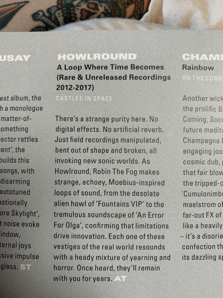 Finally, thank you so much to Electronic Sound magazine for the fabulous review of the new Howlround LP A Loop Where Time Becomes in their latest issue! Always such a supportive bunch and a total force for good in the universe, I never miss a copy. This month’s main feature is all about the year 1981, a period of which my own memories are understandably hazy, so it’s proving a very handy guide. It also features legendary figures such as Dorothy Moskowitz, Man Parrish and ever-lovable curmudgeon Savage Pencil, so lots of bases covered. Just make sure you don’t drop a copy on your toe…