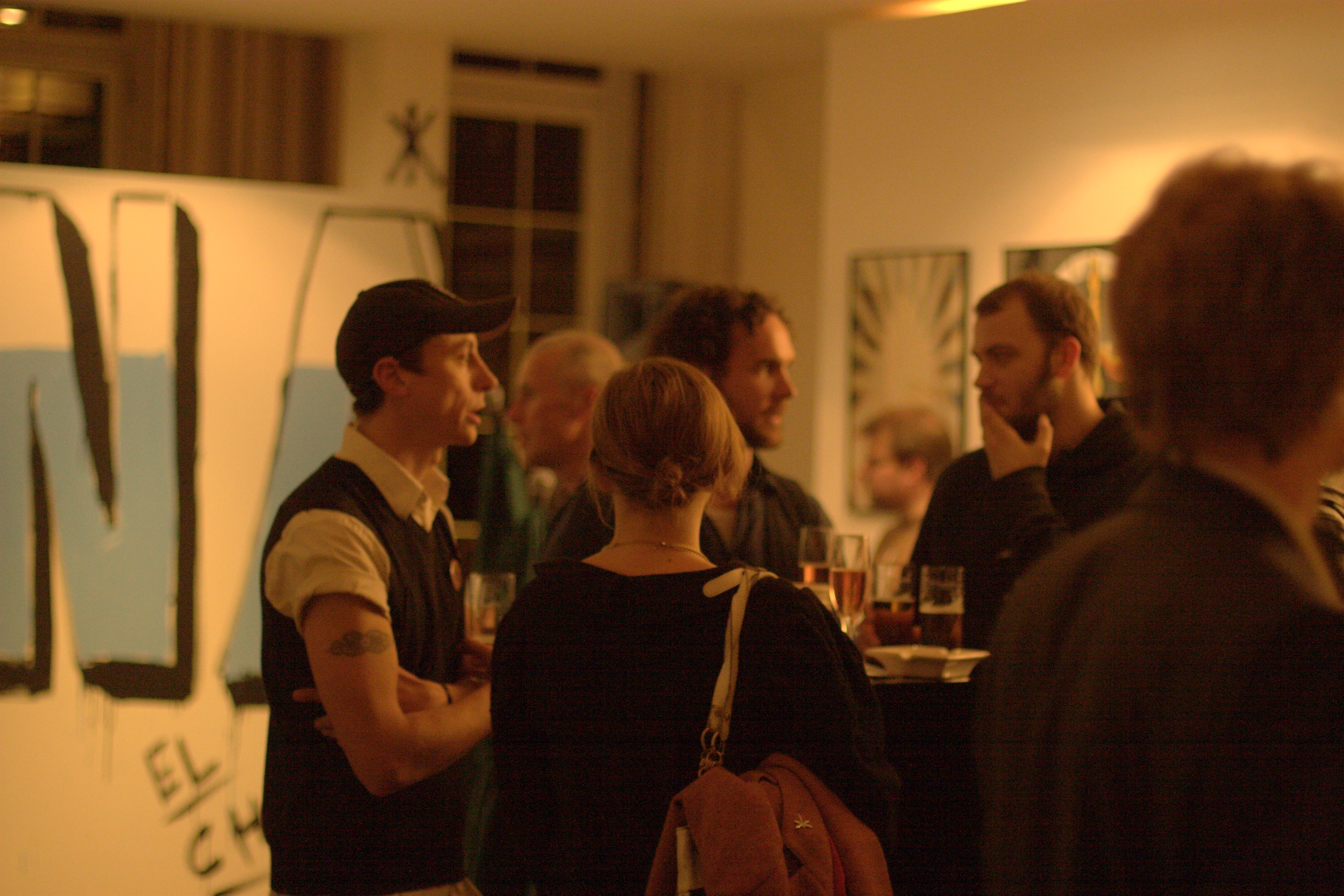 Once again the good folk of The Art Party are taking over Mol’s Place for another celebration of all that is good and right in the modern art world (there’s also a bar and canapés, but that’s purely a fringe-benefit). And this time it’s rather poignant occasion, as they are bidding goodbye to this most splendid of arts spaces, owned by collector and patron of the arts Jan Mol, who will shortly be giving up the gallery’s Covent Garden location and moving onto to pastures anew. Determined to see the venue off in fine style, the night included a mixture of painting, installation, sculpture and performance, including a live set by accapella and cassette-recorder trio Goodbye Leopold and myself as the DJ-ing glue that held it all together. Or perhaps the buttercream filling between the performance layers. Whichever analogy you prefer.