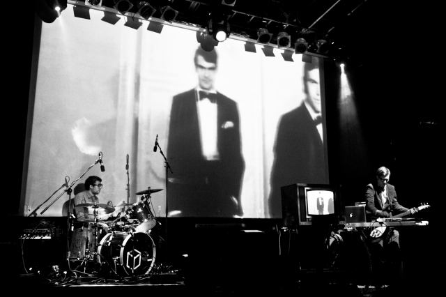 Public Service Broadcasting is the brainchild of J. Willgoose, Esq., who combines a guitar, a banjo, a computer and a theremin with samples from old public information films to create new, exciting and decidedly eccentric music that informs, educates and entertains in equal measure. He is joined in his adventures by Mr. Wrigglesworth on drums and together they conjure a sepia-tinted, bow-tie-blazing assault on all of your senses (they smell nice too), which has earned them attention from BBC 6 Music and a spate of gigs all over the place, including a recent live set at KOKO supporting Plaid and Hexstatic, during which this tasteful photo was captured:
