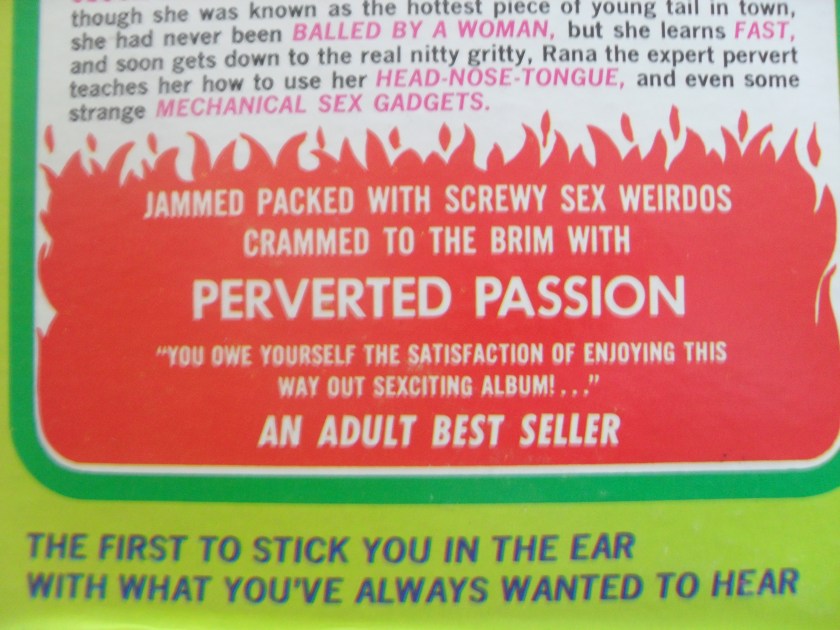 Your hosts on this journey are Rana, said to possess ‘the infamous claim to fame of being an expert SEX PERVERT!’ (their caps, not mine); and a rather dull women who appears to trade under the moniker ‘Honeypot’, though I think that may be a pet name. Who knows what kind of exciting way-out adventures await this lovely pair? The decidedly maximalist cover of their 1971 LP teases us with a couple of subtle clues…