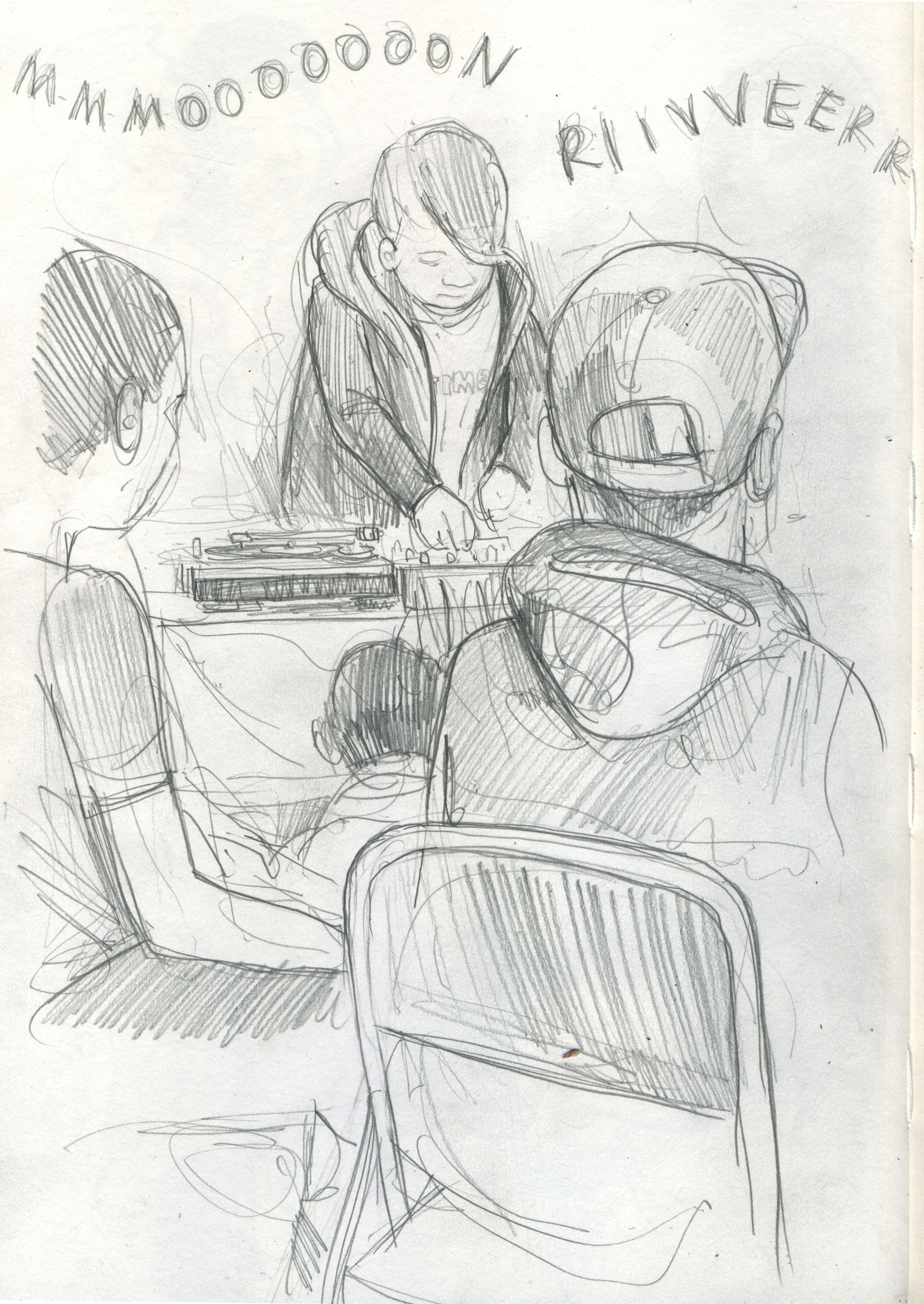 And lastly, let us turn to this affable chap called Ollie, whose contact details I have since lost and therefore cannot be properly credited (unless we can track him down). Which is a shame, as I think this drawing wraps up the spirit of the evening rather neatly: