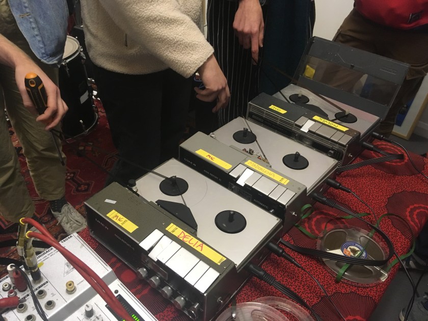 In conclusion, an exciting weekend ahead. My only concerns now are getting the machines ready for action in good time and cutting a whole load of new loops in preparation, as I’m hoping to unveil a completely new live show on both occasions. Speaking of which, thanks to everyone who came down to my recent loop cutting workshop and performance at Kit Records’ Pop-up record shop in New Cross. A tight schedule has meant that I haven’t had a proper chance to go through the loops and recordings we made that afternoon, but with a bit of luck some of them just might sneak into this weekend’s performances.