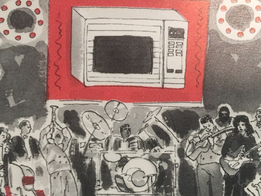 Moving on, a very different type of heat is being generated over over on the freshly minted London Sound Heritage blog, where I’ve written a few words on the twin subjects of pop music and microwave ovens; thanks to a rather special cassette discovered in the London Metropolitan Archives. I can’t remember if I’ve mentioned in these pages my current involvement in the Unlocking Our Sound Heritage project (a nationwide attempt to preserve historic ‘at risk’ recordings in collaboration with the British Library), but we’re aiming to digitise 5,000 individual recordings over the next three years, of which ‘NEW WAVE COOKERY FOR THE 90’S’ (caps very much theirs) is just one especially strange example. Distributed to youth clubs around the turn of that decade, the cassette involves a rather breathless quiz featuring fifty relentless questions on those twin lode-stars of any young person’s life: pop music and microwave cookery. The winners would then be set the challenge of having to ‘devise’ and serve a microwave meal for the multi-award-winning lyricist Tim Rice (allegedly) in the hope of bagging themselves an Atari ST and a MAGNIFICENT TROPHY (their caps again). Oh, how we chortled in the office at the thought of the man behind Joseph, Evita et al. being sat at a high table in front of a crowd of expectant teenagers*, napkin at the ready, gazing wearily down at each of the deeply-unappetising cellophane-wrapped atrocities placed in front of him; all the whilst having someone with a clipboard hissing in his ear, ‘Listen, ducky, you agreed to the money – start making yum-yum noises for these little swines or I’ll have you microwaved!’ Different times, of course. Why not head over to the blog and take the test yourself, to see if you’re as smart as your average 1980s youth? Surely we must all be cleverer these days with the internet at our disposal, right?