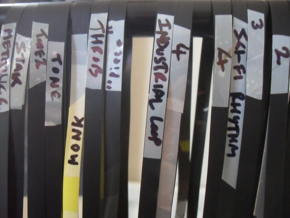 We were made most welcome by the staff and students of the college who took a real interest in our work (particularly our demonstration of how much fun you can have with a loop of tape and a staffroom radiator) and were in turn most impressed by the student’s work that was on display. Plus we were rewarded for our efforts with a slap-up thai meal and – even more excitingly – two new additions to our army of PR99 tape machines. Not a bad day’s work at all! But every silver lining must of course have a cloud, which accounts for the fresh scar on Chris’s right hand, the fresh scar on the wall of my flat where I inadvertently threw a tape machine; and the apparent lesions to my spine which asserted themselves the following morning while bending over to pick up a sock. Such are the risks of a life spent hulking great big reel-to-reel machines around, risks that have now afforded me several hours stiffly regarding my bedroom ceiling from a dramatic new perspective. The moral of the story? Leave your socks where they fall…