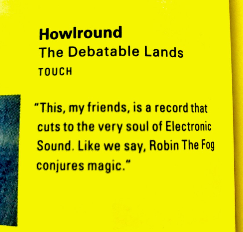Also absolutely proud and delighted to inform you that Howlround’s latest LP The Debatable Lands has been selected as one of Electronic Sound Magazine’s albums of the year, and while I haven’t had time to properly celebrate this fantastic news over the past manic week, rest assured I shall be proposing a toast to the staff of that fine periodical over the Christmas lunch table. What a way to end 2019! I never miss a copy, you know…
