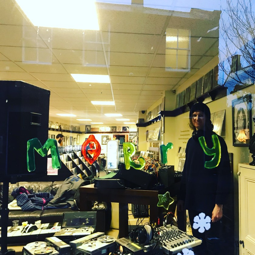 I’m told Steve has safely arrived back in London and we’ll be working on this set some more in the new year in readiness for a further performance at Cafe Oto on January 25th. But for the moment, I think this photo of him taken through the window at soundcheck would make a rather fine Christmas card. What do you reckon?