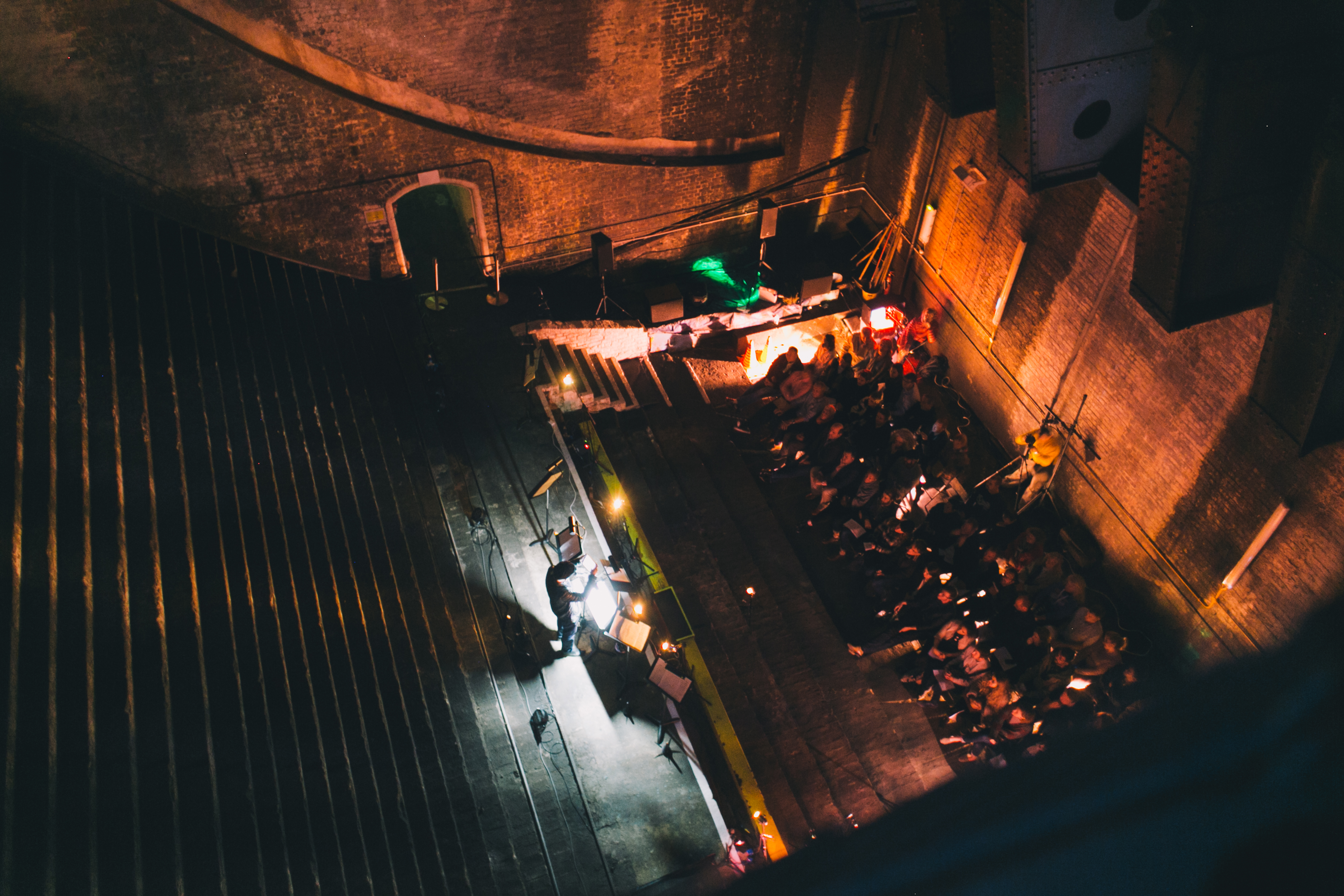 The initial inspiration for the project came from a recording of this vintage machinery at work that was originally made by Ian Rawes of The London Sound Survey. Iain Chambers’ coming across it proved to be the catalyst for an original composition ‘Bascule Chamber’ in which the brass section of the Dockside Sinfonia play along with the sound of the bridge to uncanny and beguiling effect. Before long this unlikeliest of stages was set for a series of concerts featuring two more original compositions by Iain and an interpretation of John Cage’s ‘Aria’ by the soprano Catherine Carter; each performed live and taking full advantage of the chamber’s unique acoustics.